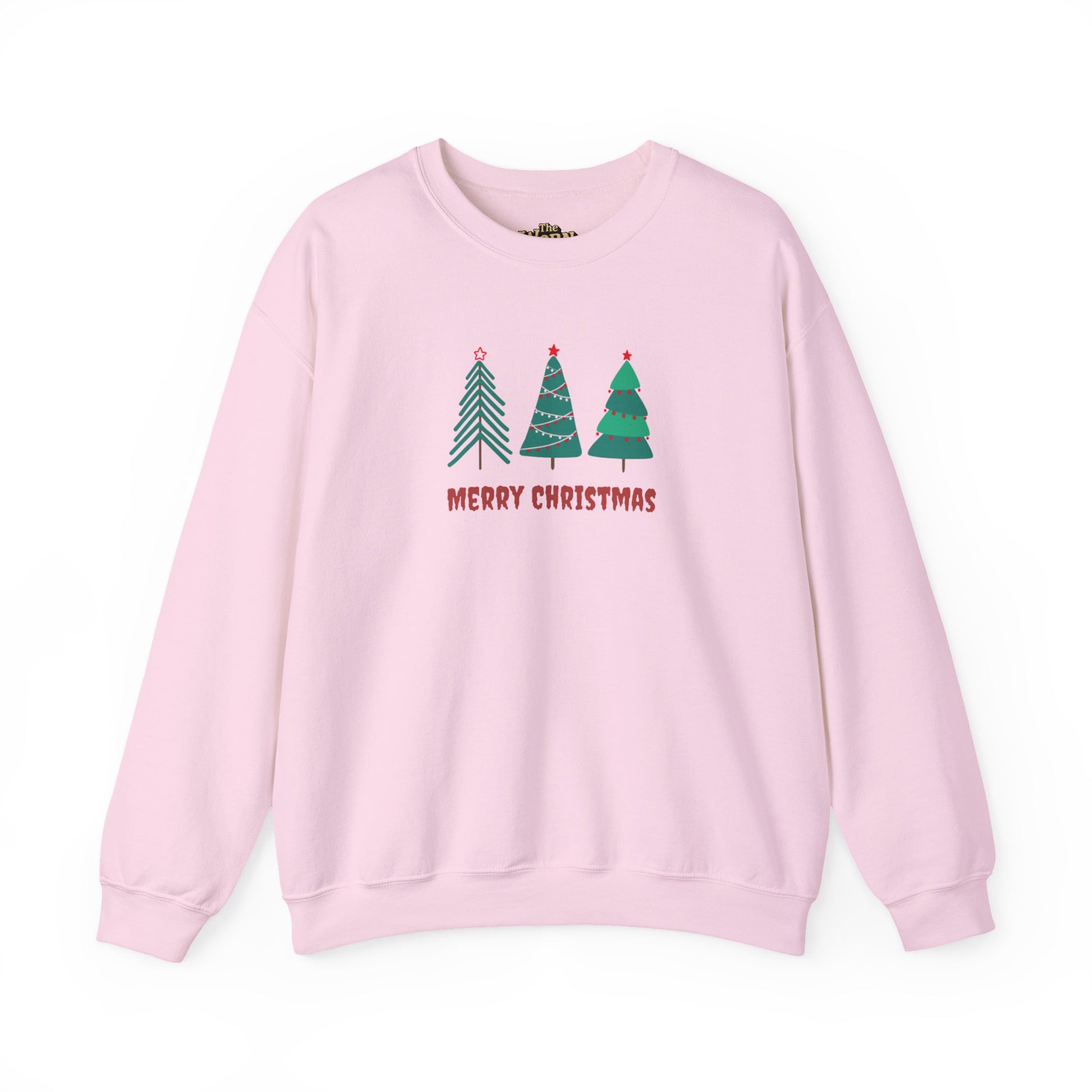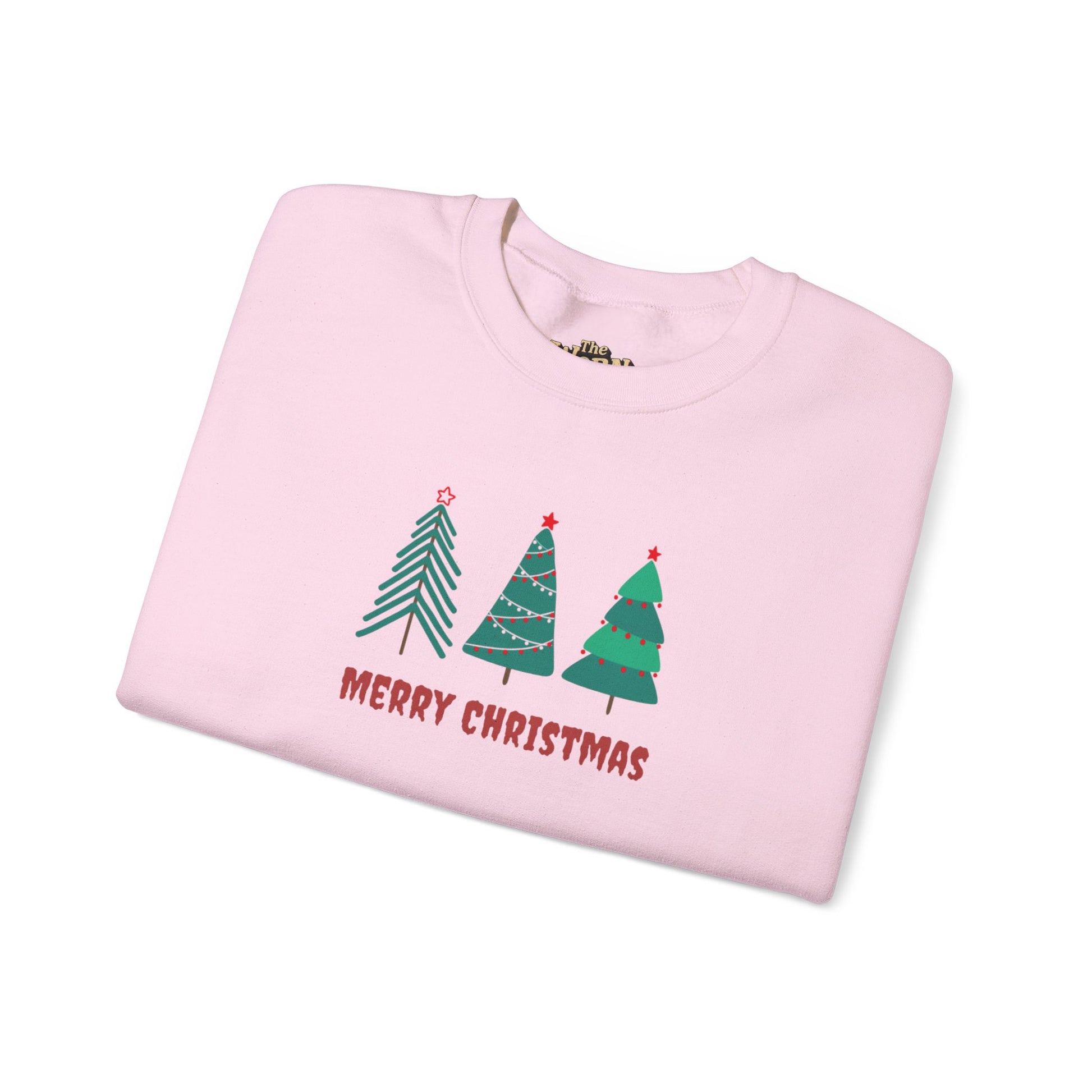 A cozy, soft crewneck sweatshirt that brings a gentle, whimsical holiday vibe to quiet winter mornings and low-key gatherings. The simple trio of stylized trees and hand-lettered "Merry Christmas" feel handmade and sincere — like a small tradition you reach for every December. The mid-weight cotton-poly blend keeps warmth without bulk, and the tubular knit construction gives a smooth, seam-free silhouette that layers easily over shirts or tees. Subtle ribbing at the collar and cuffs holds shape after repeated wear, while durable double-needle stitching stands up to holiday hustle. Whether worn for tree-trimming, cookie-baking, or slow coffee by the window, this sweatshirt fits naturally into a relaxed, home-centered holiday rhythm.