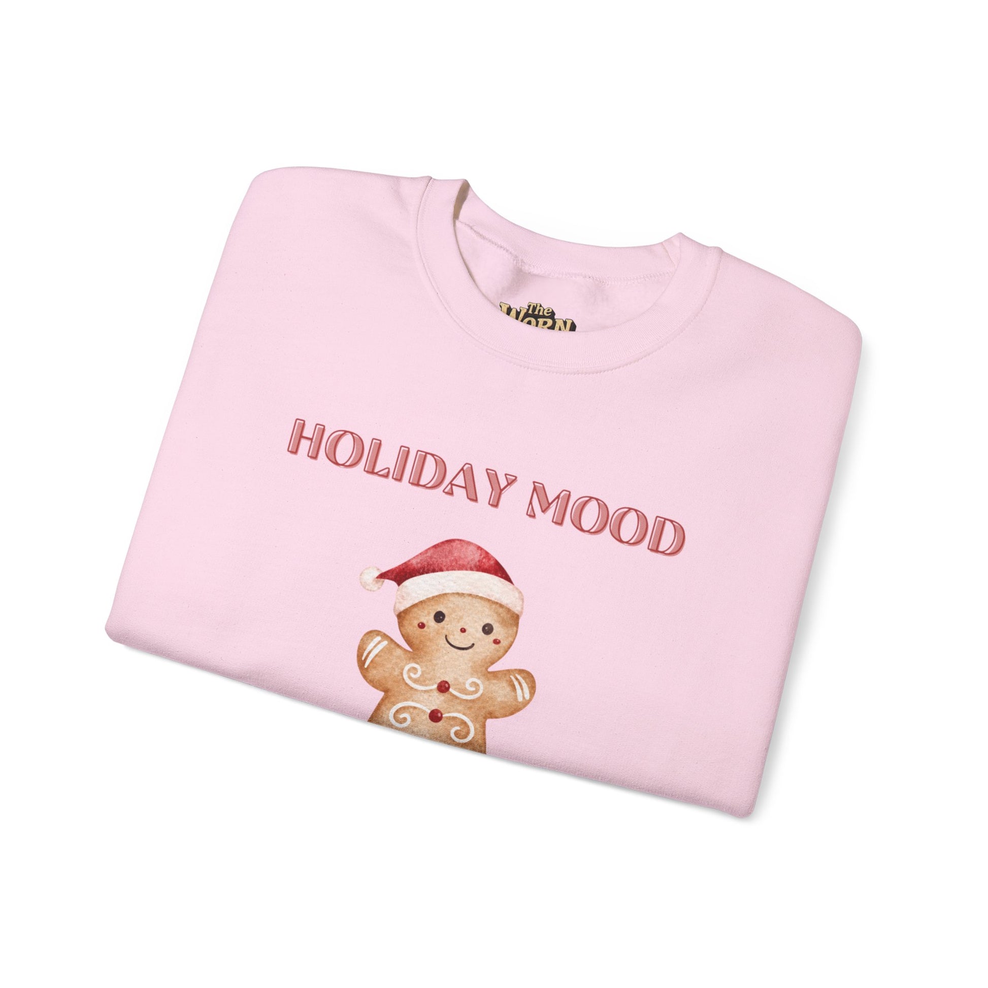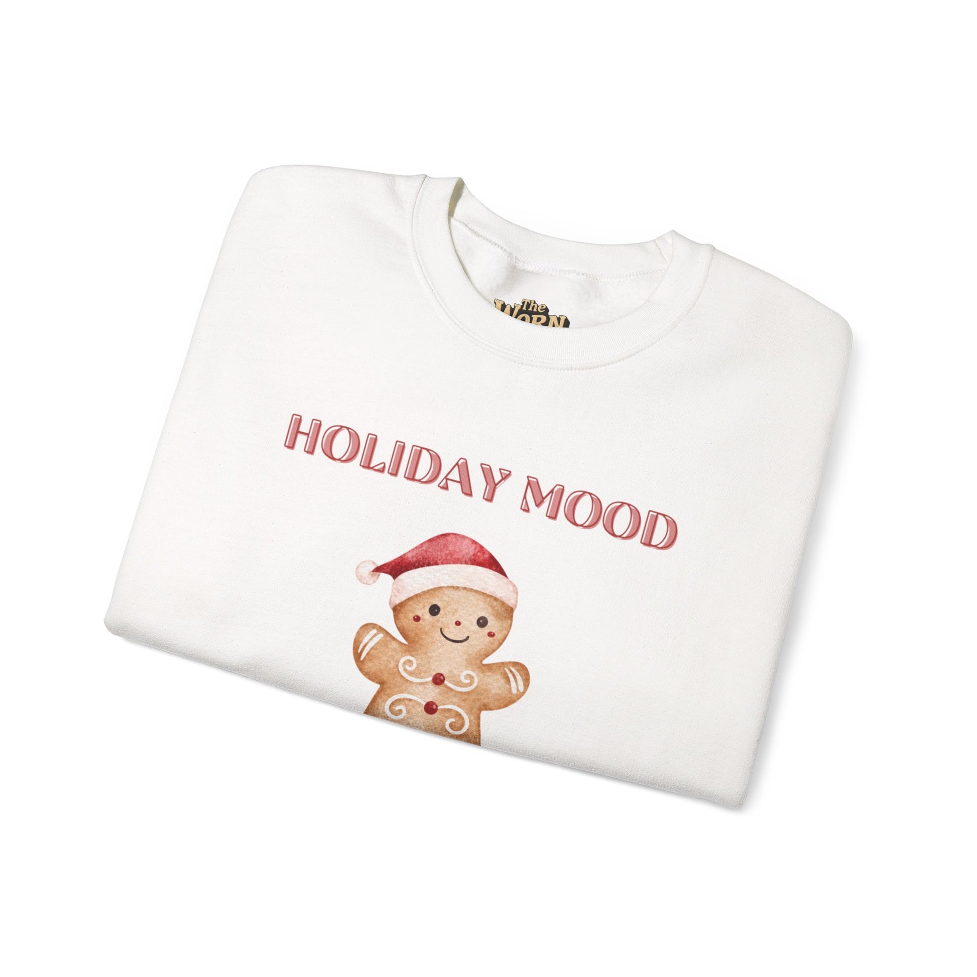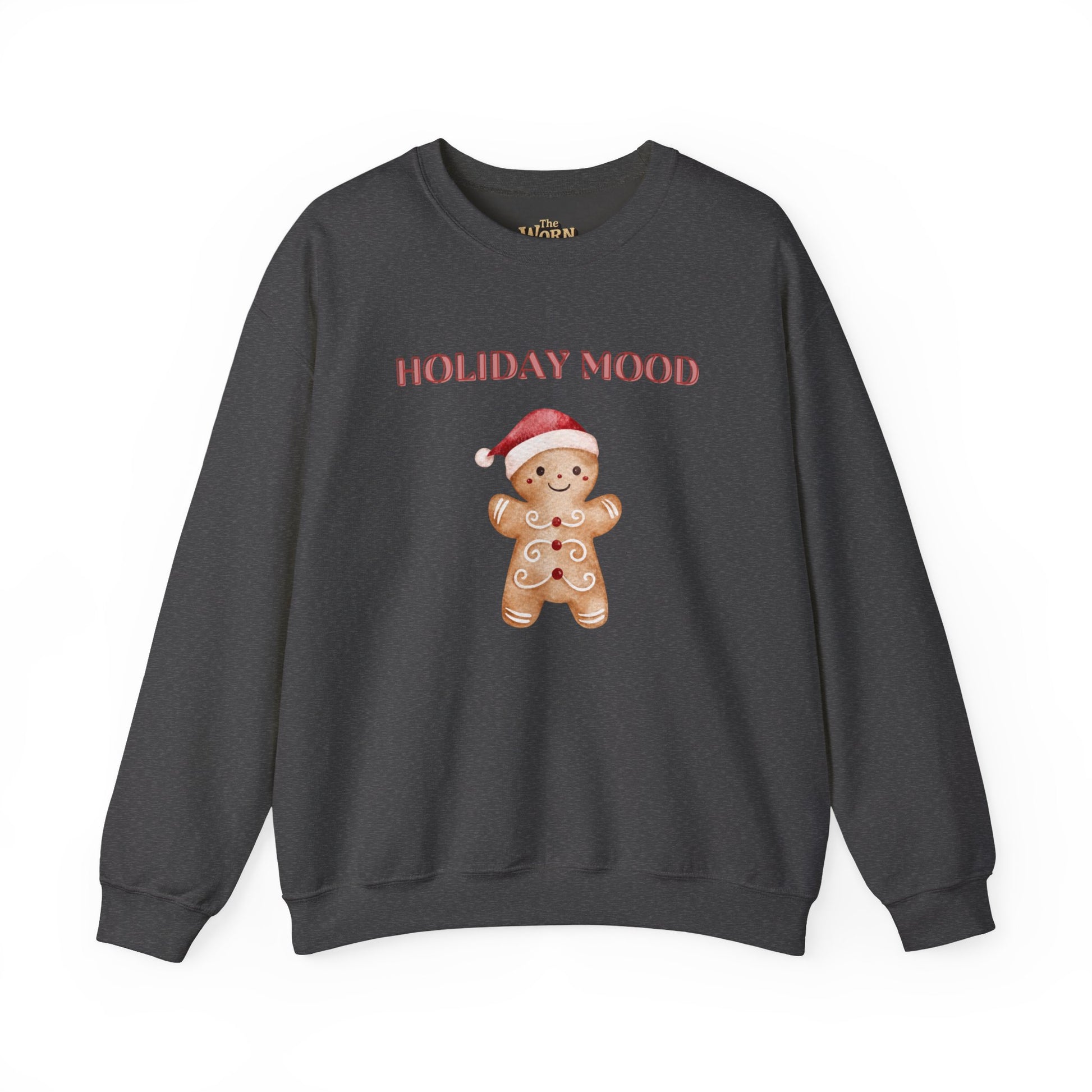 Soft, slightly oversized comfort meets cozy holiday charm. This crewneck brings a warm, homey vibe with a smiling gingerbread character and cheerful “HOLIDAY MOOD” lettering. It feels like a quiet morning with fresh cocoa and twinkling lights — the kind of sweater you reach for when you want to slow down, laugh with family, or wrap yourself in something familiar during festive gatherings. The medium-heavy knit holds shape through seasons, and subtle details like a ribbed collar and double-needle stitching make this sweatshirt feel built to last. Wear it to cookie swaps, tree-decorating nights, or lazy winter weekends when comfort and cheer matter most.