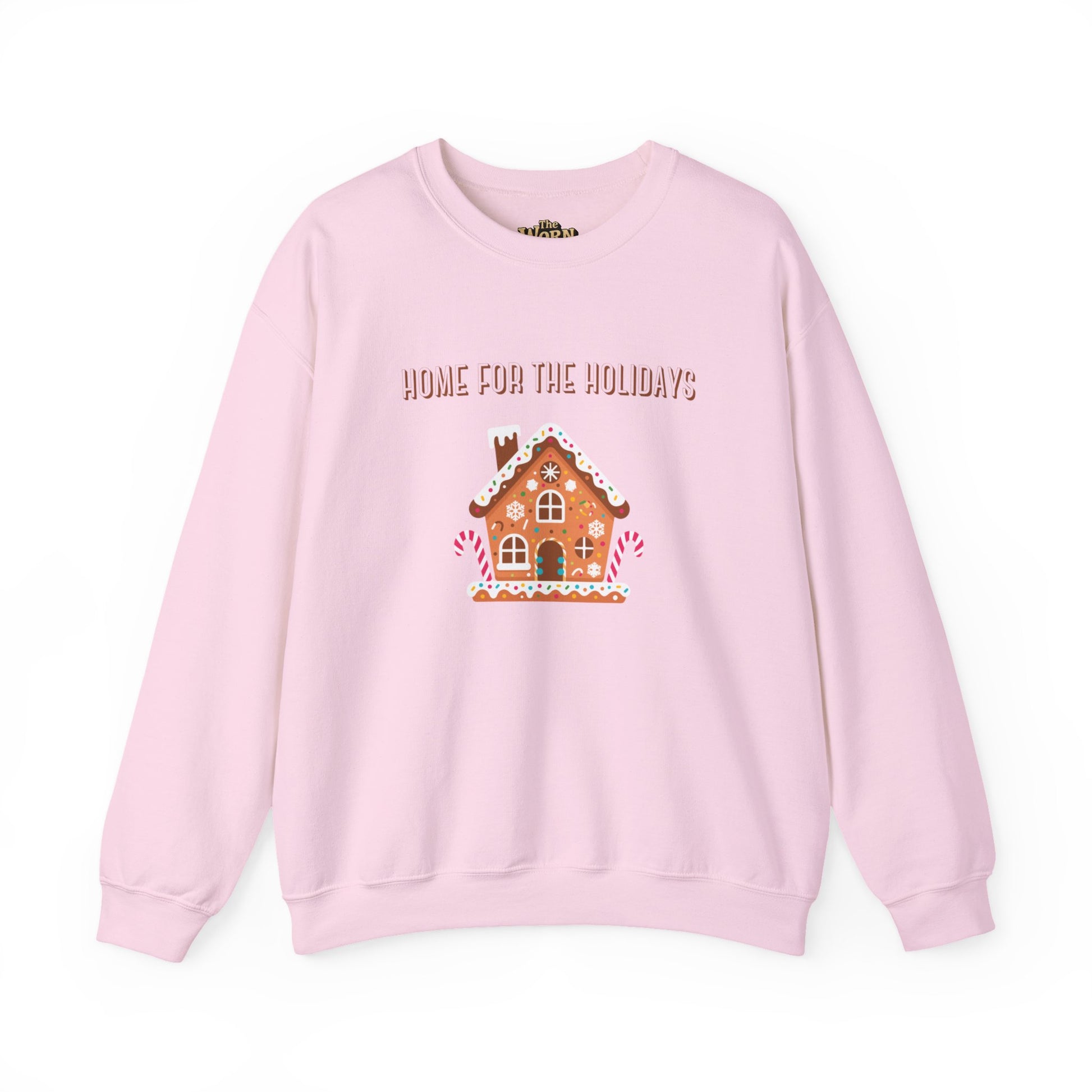 Warm and gentle, this cozy crewneck brings a touch of homemade holiday charm to quiet evenings and bustling family kitchens alike. The soft white sweatshirt features a hand-drawn gingerbread house and the phrase “Home for the Holidays,” evoking the smell of spice and the comfort of familiar traditions. It sits comfortably over pajamas after a late-night cookie bake, pairs with leggings for tree-lighting strolls, and layers under a coat for carol-singing down the block. The design feels like a friendly, nostalgic hug — homespun, cheerful, and quietly festive.